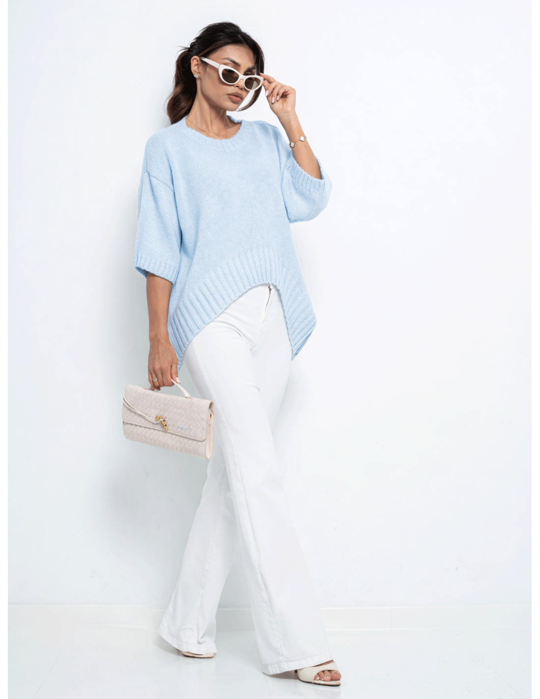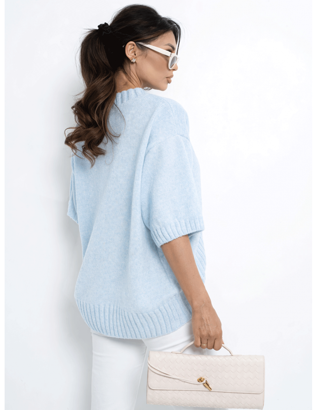 Modny sweter z krótkim rękawem LEANNA - błękitny